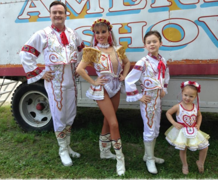 The world renowned Bertini Family, are well known for their unique balancing agility, pyramids and acrobats atop their high unicycles. The Bertini's are internationally famous in Europe, as well as here in the United States. They were recently inducted into the Ring of Fame in Sarasota, Florida. Vlastek Bertini and his wife, Kim Sue, continue in the sixth generation, performing with their son Vincent and their daughter, Violet. These younger Bertinis are representing the seventh generation of circus performers in the Bertini family.